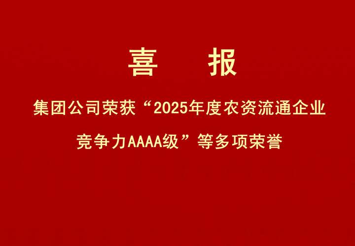 喜報|集團公司榮獲“2025年度農(nóng)資流通企業(yè)競爭力AAAA級”等多項榮譽